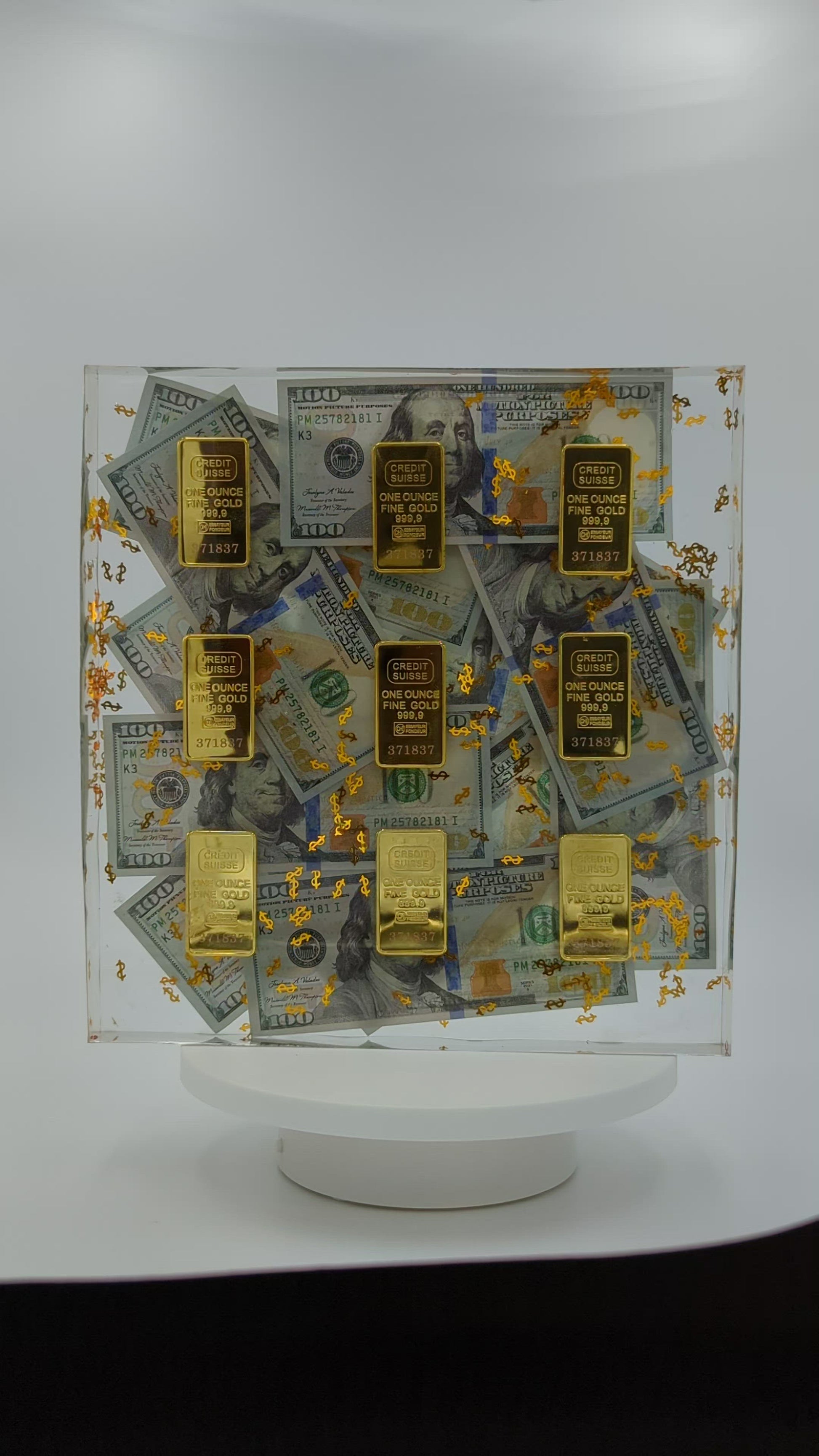 Resin Square Block - Dollars & Gold