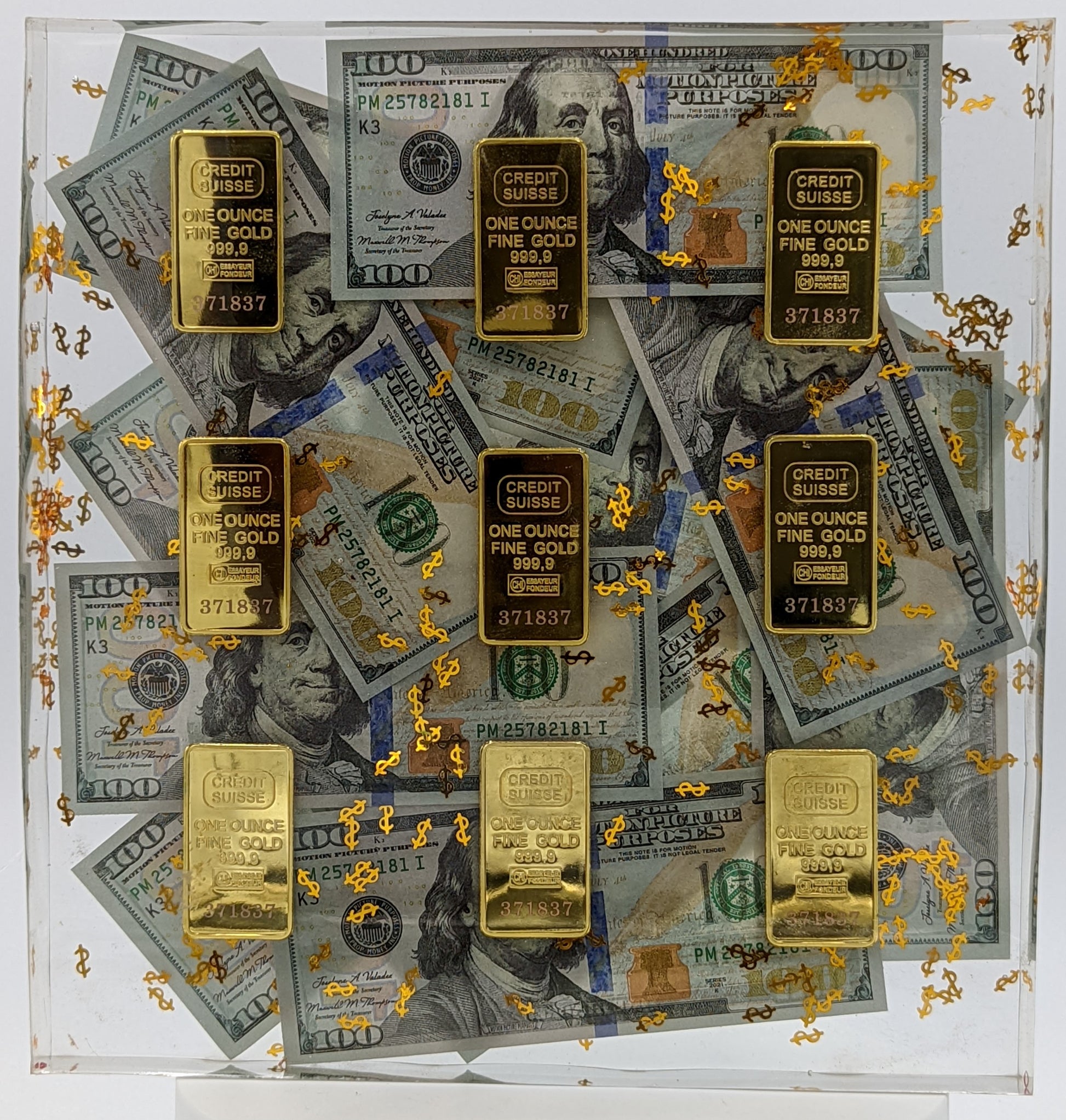 Prop Money, Dollar Glitter and Gold Bars - Solid Resin