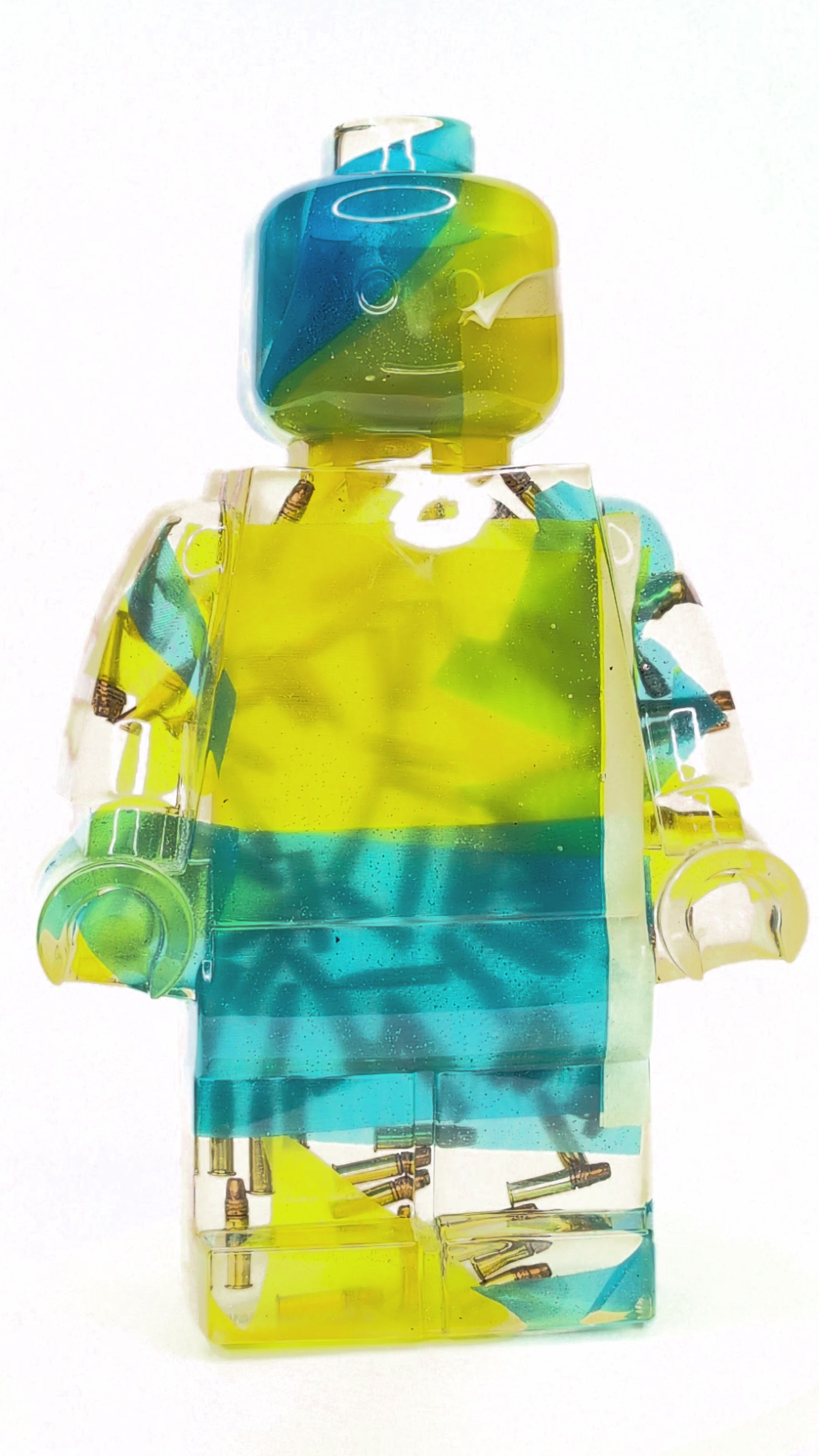 Ukrainian Flag & (Live) Bullet Filled - Resign Figure - 11" Tall - Solid Resin